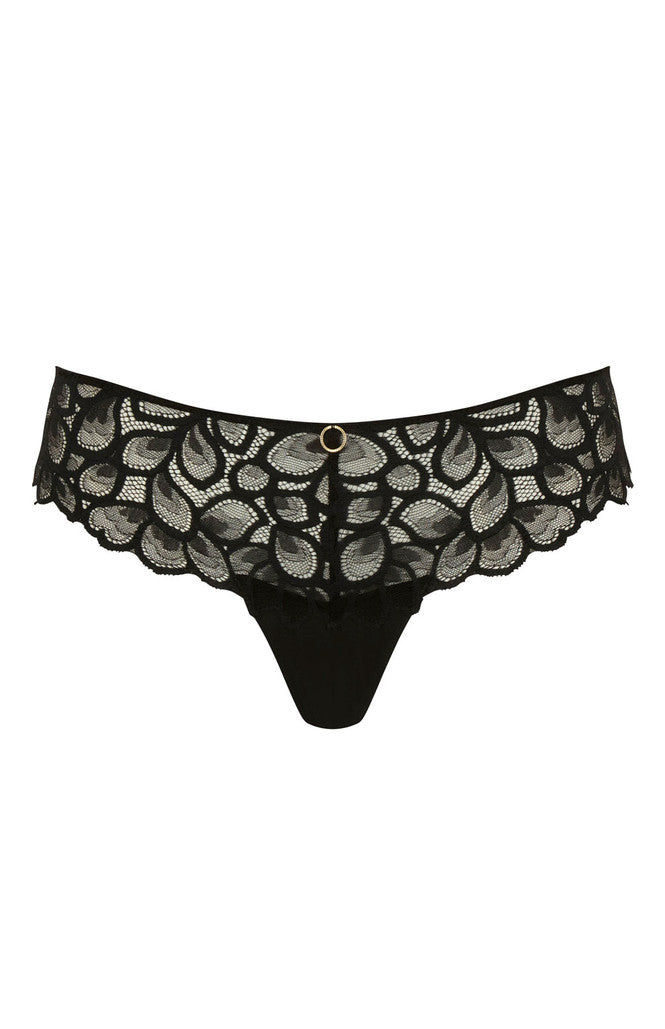 Complete your captivating lace look with the Allure Brazilian. Featuring sheer lace that flatters your body and a flirty keyhole cut out at the back. Matching gold ring detailing refreshes this pant for an overall sultry and sophisticated lingerie look.