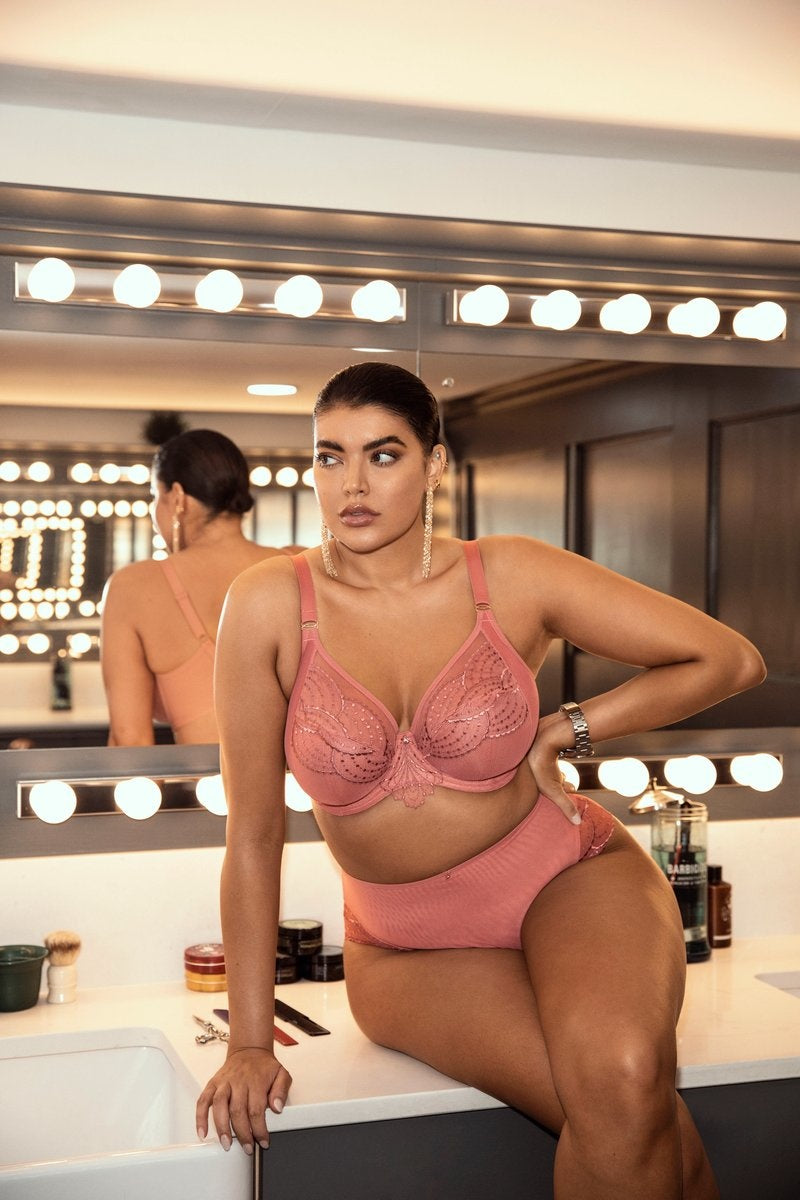 Introducing Priya, Elomi’s new luxury collection that embodies all things 1920’s glamour. Featuring an embroidery inspired by decadent chandeliers and draped beading, the intricate design dances across the top cup and down the centre front with a tattoo style panel at the underbust. A rose gold charm detail at the centre front completes the look.