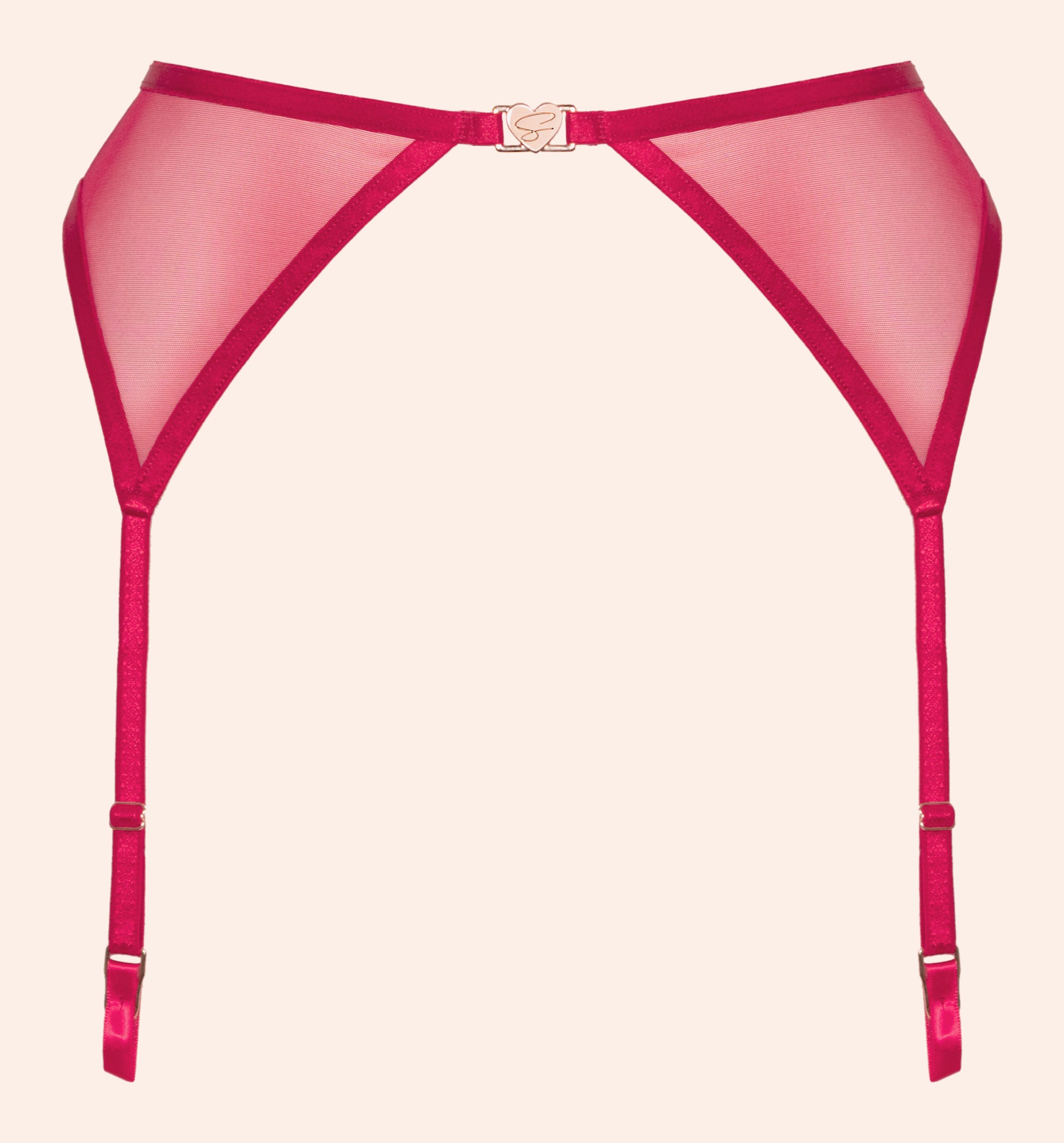 The Loved Up Garter Belt in Crimson has undeniable charm. A heart-shaped charm takes center stage while stretch panels hug you in all the right places, creating a silhouette that's equal parts confident and captivating. High-shine elastics add a luxe finishing touch. Whether you're dressing up for date night or just want to feel amazing underneath, this Valentine's Day essential delivers romance.