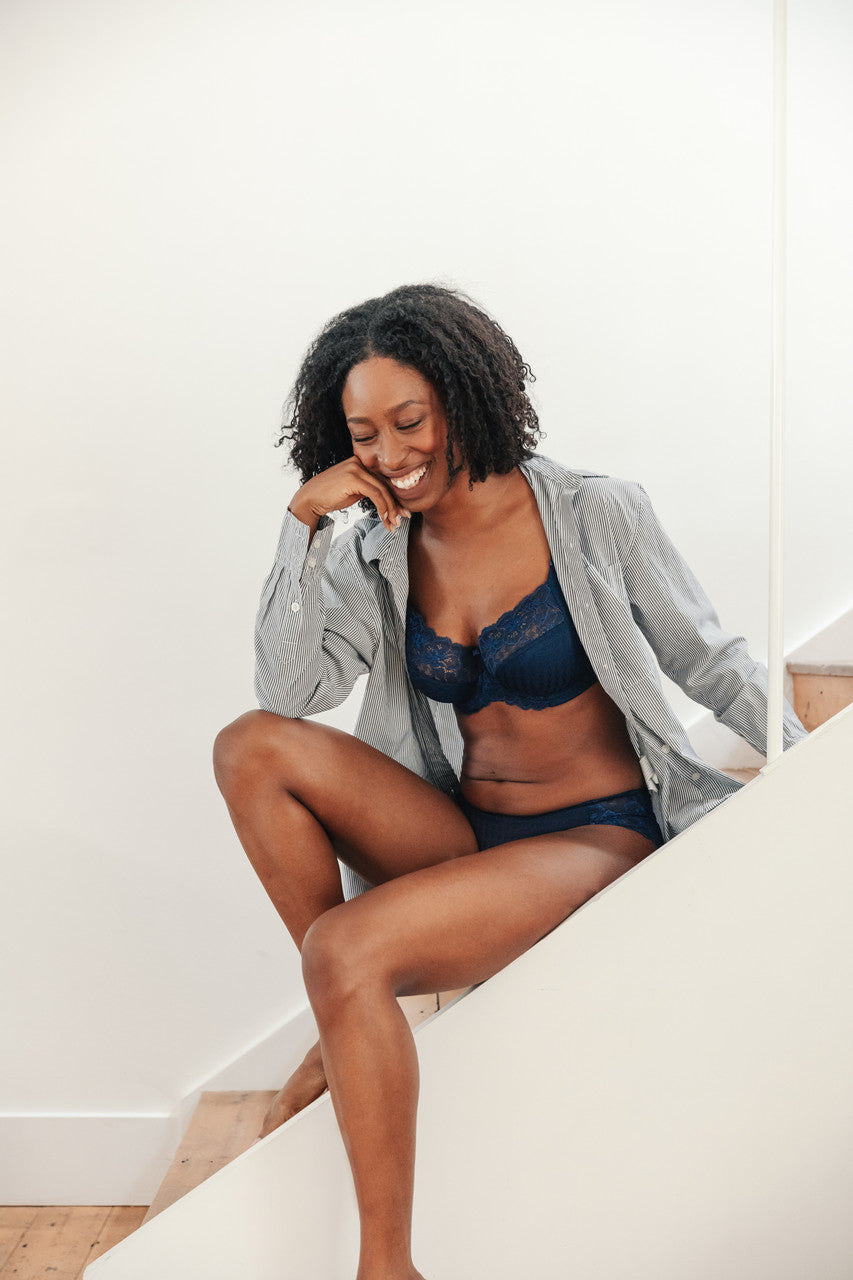 An iconic style within the Panache collection and a best seller, the Envy Full Cup is a true essential for D plus ladies. Try Navy for a modern look and a great alternative to black. With stretch lace top cups for an accommodating fit, this style offers amazing support with laminated bottom cups to give you shape and side slings to give forward projection. Designed with a timeless all over jacquard lace and floral lace top cups, Envy never goes out of style.