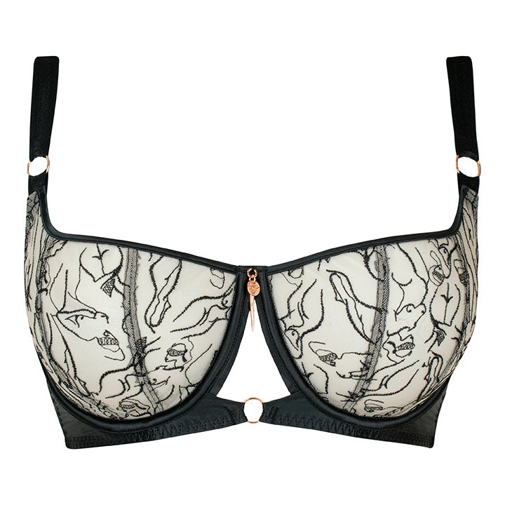 Scantilly’s assertive Sex Education collection adorned by an intriguing abstract embroidery of the female form. The non-padded balcony bra lifts your boobs for a divine cleavage, finished with satin and rose gold details.
